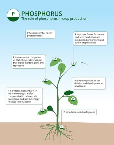All plants require phosphorus to maintain their general well-being and vigor, Phosphorus is a vital nutrient for plants, playing a key role in energy transfer, photosynthesis, and nutrient movement within the plant. It is an essential component of nucleic acids, ATP (adenosine triphosphate), and phospholipids, which form the structural foundation of cell membranes. Due to its involvement in these critical functions, phosphorus is necessary for root development, flowering, and fruiting.